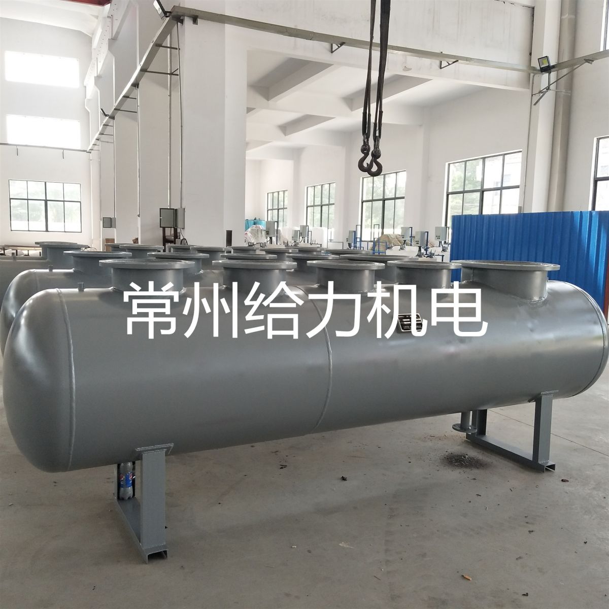分集水器是由集水器和分水器组合而成的水流量分配和会集装置。分水器是将一路进水通过一个容器分为几路输出的设备,而集水器则是将多路进水通过一个容器一路输出的设备。其管理若干的支路管道,分别包括回水支路和供水支路,其较大多为DN350-DN1500不等,用碳钢或不锈钢板制作,属于压力容器类专业,其需要安装压力表温度计。它一方面将主干管的水按需要进行流量分配,保证各区域分支环路的流量满足负荷需要,同时还要将各分支回路的水流汇集,并且输入回水主干管中,实现循环运行。其回水再利用,可达到更节能的效果,可以同时满足供热与制冷的需要,其广泛应用于锅炉、中央空调、工业循环冷却水系统、热水系统。