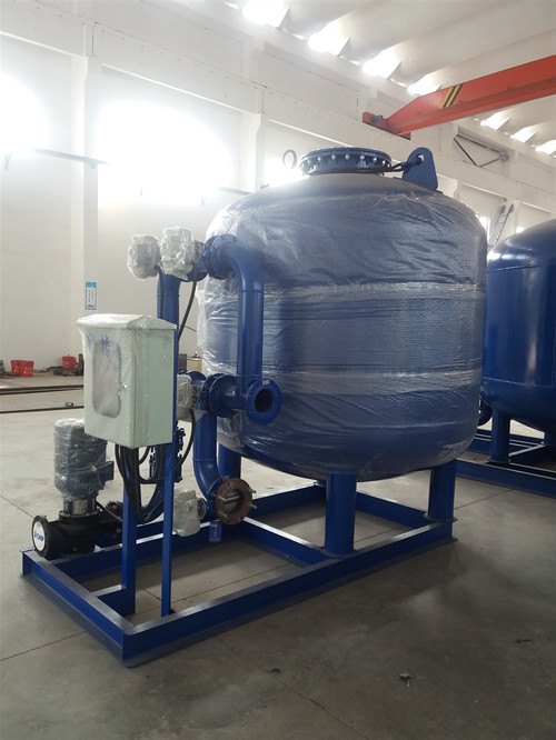 石英砂过滤器是一种压力式过滤器,利用过滤器内所填充的精制石英砂滤料,当进水自上而下流经滤层时,水中的悬浮物及粘胶质颗粒被去除,从而使水的浊度降低。