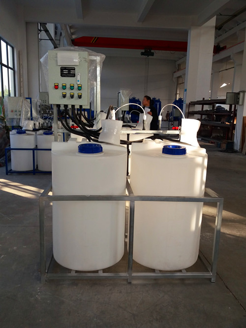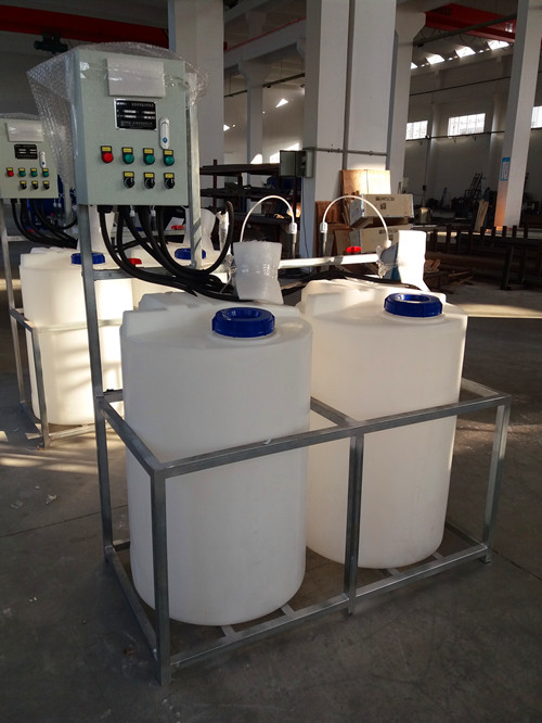 自动加药装置是生产用于电厂的给水、炉水、循环水、废水等处理,也可用于石油、化工、环保、供水系统等行业。 自动加药装置在通风工程中的应用:高浓度的碳酸钙、碳酸镁等化学垢和生活粘泥会在温度较高的冷凝器部位沉积,致使主机制冷量严重下降。这就需要自动加药装置,对水质进行处理。 应用 :自动加药装置主要用于电厂的给水、炉水、循环水、废水等处理,也可用于石油、化工、环保、供水系统等行业。