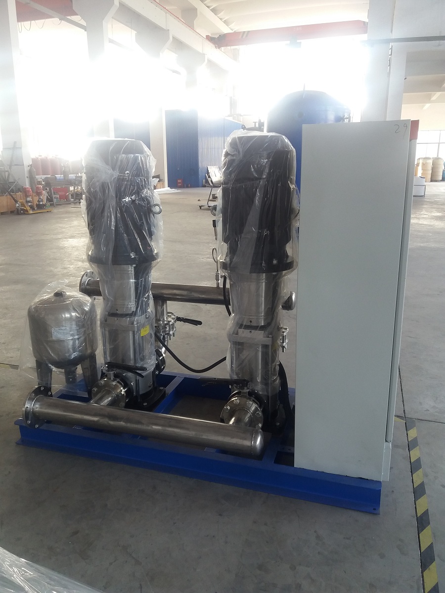 变频供水机组是一种直接与市政管网相连,而不会对市政管网产生影响的成套供水设备。该设备在ZBH变频恒压的基础上,将市政管网压力和提升水泵的压力进行叠加,使生活供水更加节能和环保,是传统二次供水理想的更新换代产品。该设备由变频控制柜、无负压装置,自动化控制系统及远程监控系统、水泵机组、稳压补偿器、负压消除器、压力传感器、阀门、仪表和管路系统等组成。