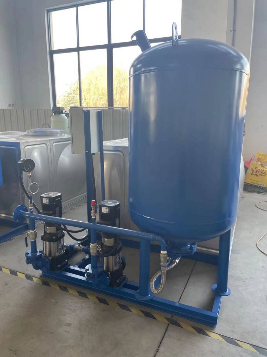 分体式定压补水机组采用特殊技术措施,把膨胀部分和气压稳压部分分开设置,可使系统的绝大部分膨胀量储存于隔离的膨胀器中,设备的体积利用率可达90%以上,因此整机体积、高度大为缩小,节约用地50%~60%, 便于设备布置、安装,又节约了机房的土建成本。