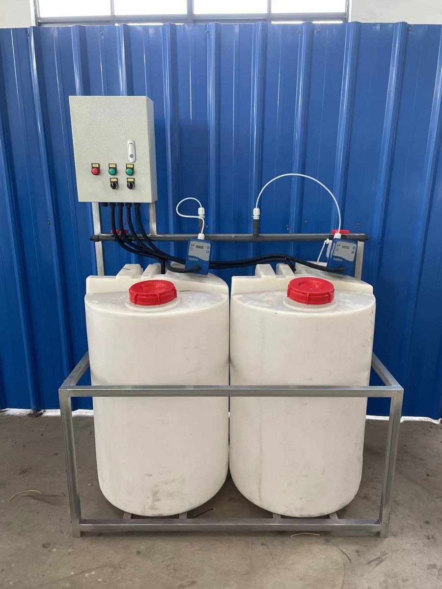 全自动加药装置采用时间程序控制,此控制方式无需仪表的支持,首先根据系统的运转需要设定自动加药的周期、加药量、加药时间和加药频率。在以后的系统运转过程中,到加药周期,计量泵自动打开加药,加到规定的时间计量泵关闭;到排污周期,计量泵停止加药,排到规定的时间后,计量泵继续开启,补充排污损失掉的药剂,把系统的含药量维持在正常的水平、加到规定的时间计量泵关闭。