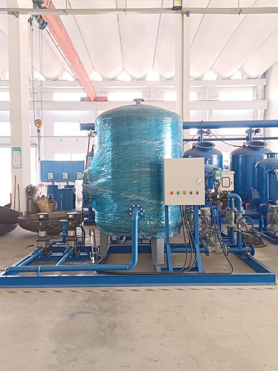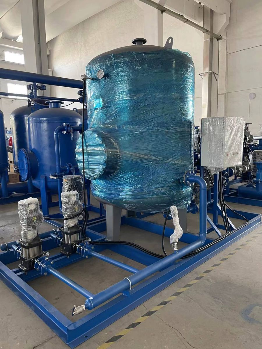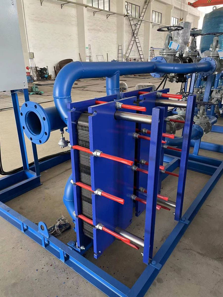板式换热机组,为换热机组的一种型号,其特点是采用板式换热器,在相同压力损失情况下,其传热系数比管式换热器高3-5倍,占地面积为管式换热器的三分之一,热回收率高。设备由板式换热器、智能温控装置、智能电控装置、循环泵、补水泵、稳压膨胀水箱、补(凝)水箱、过滤器、阀门、仪表、传感器、配管底座等组成。