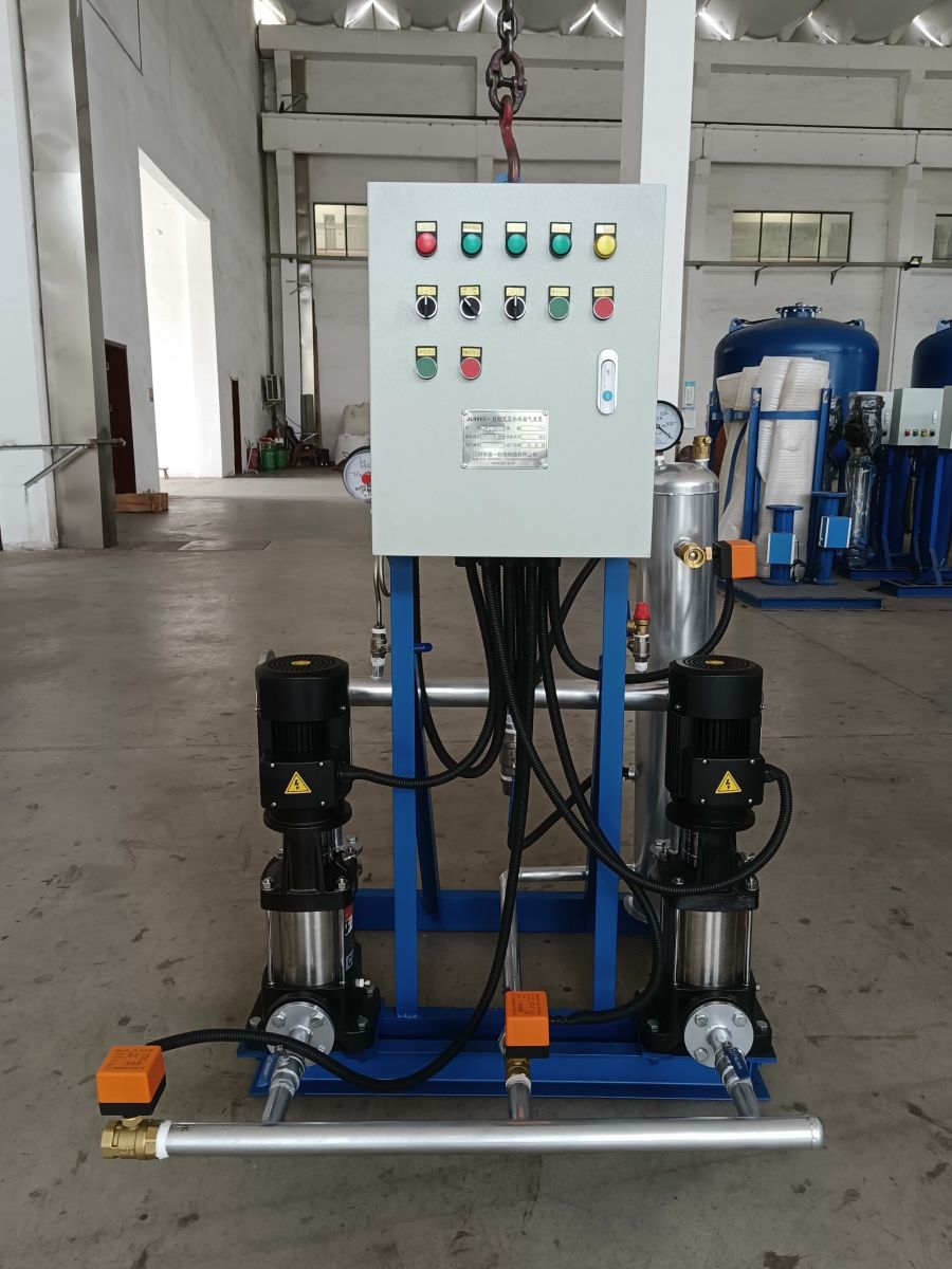 定压补水机组由囊式压力罐、水泵、控制箱、底架、压力感应装置、管道阀门等组合而成,是一种兼有升压、调节、储水、供水等多种功能的常用供水设备。定压补水机组利用气压罐的可调节能力,可自动调节用户水量的变化,当用水量减少或不用水时,可较长时间不启动水泵,达到节能目的。与水塔、高位水箱相比可节省投资约40%-60%。该设备结构紧凑,与其他传统的供水装置相比减少了占地面积,节省了土地资源。本设备全自动运行,无需专人管理,工作可靠。
