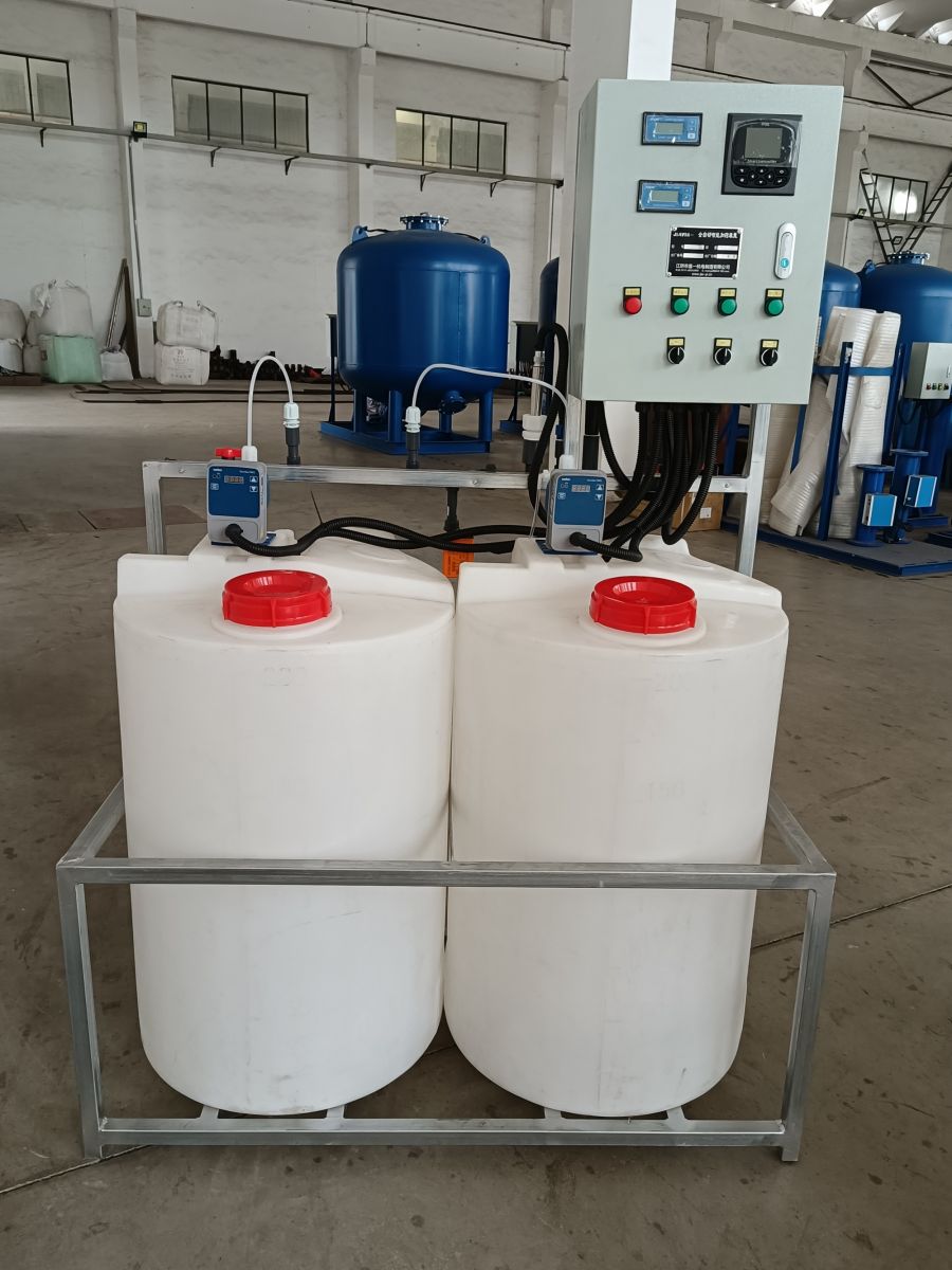 全自动加药装置采用时间程序控制,此控制方式无需仪表的支持,首先根据系统的运转需要设定自动加药的周期、加药量、加药时间和加药频率。在以后的系统运转过程中,到加药周期,计量泵自动打开加药,加到规定的时间计量泵关闭;到排污周期,计量泵停止加药,排到规定的时间后,计量泵继续开启,补充排污损失掉的药剂,把系统的含药量维持在正常的水平、加到规定的时间计量泵关闭。