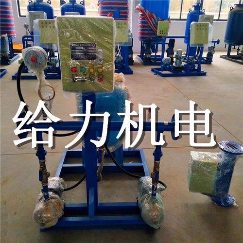 定压补水装置初始运行时 启动补水泵向系统及气压罐内的水室中充水,系统充满后多余的水被挤进胶囊内。因为水的不可压缩性,随着水量的不断增加,水室的体积也不断的扩大而压缩气室,罐内的压力也不断的升高。当压力达到设计压力时,通过压力控制器使补水泵关闭。当系统内的水受热膨胀使系统压力升高超过设计压力时,多余的水通过电磁阀排至补水箱循环使用,当系统压力超过管网或设备工作压力时,安全阀开启,起到保护管网和设备的作用,当系统中的水由于泄露或温度下降而体积缩小,系统压力降低时,胶囊中的水被不断压入管网补充系统的压降损失,当系统压力至设计允许的zui低压力时,通过压力控制器使补水泵重新启动向管网及气压罐内补水,如此周而复始。
