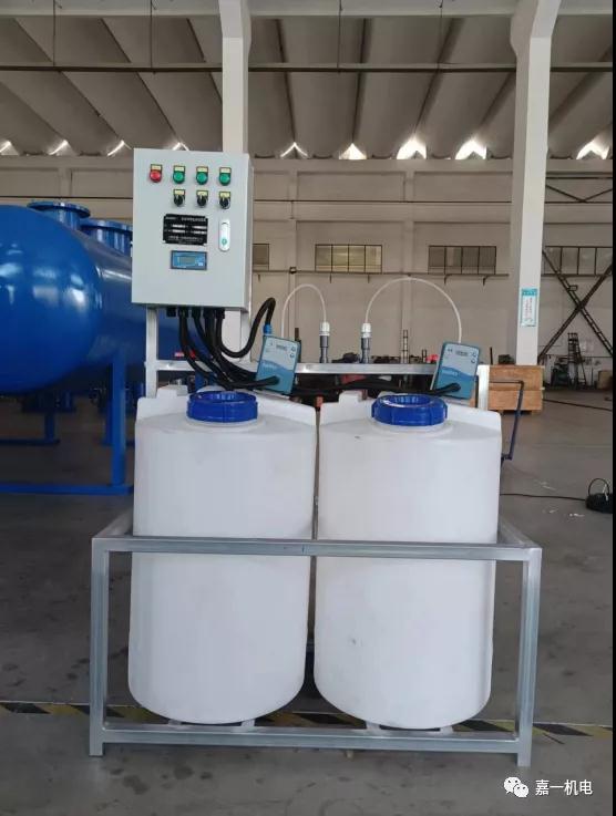 全自动加药装置采用时间程序控制,此控制方式无需仪表的支持,首先根据系统的运转需要设定自动加药的周期、加药量、加药时间和加药频率。在以后的系统运转过程中,到加药周期,计量泵自动打开加药,加到规定的时间计量泵关闭;到排污周期,计量泵停止加药,排到规定的时间后,计量泵继续开启,补充排污损失掉的药剂,把系统的含药量维持在正常的水平、加到规定的时间计量泵关闭。